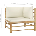Met deze bamboe loungeset creëer je eenvoudig een ontspannende loungehoek in je tuin. Het materiaal van bamboe maakt de set stevig en gemakkelijk schoon te maken. De set is voorzien van dik gevoerde kussens die zorgen voor extra comfort tijdens het loungen. Daarnaast zijn de kussenhoezen afneembaar en wasbaar dankzij de handige ritsen. De lichtgewicht constructie maakt het bovendien makkelijk om de set te verplaatsen. Het modulaire ontwerp geeft je de vrijheid om de set in elke gewenste samenstelling te plaatsen voor een unieke loungesfeer.
