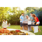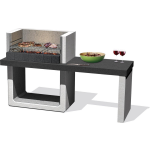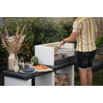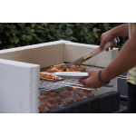 De Porto NEW betonnen barbecue van Sarom Fuoco is een absolute eyecatcher met zijn unieke design bestaande uit twee delen: een barbecuegedeelte en een tafelgedeelte. Met een gewicht van 259 kg staat deze barbecue stevig op zijn plek en biedt het sterke beton extra veiligheid. Deze veelzijdige barbecue kan zowel gebruikt worden met hout als houtskool en heeft een ruim grilloppervlak van 67 x 40 cm. Hierdoor is er voldoende ruimte om voor maximaal 12 personen tegelijkertijd een heerlijk gerecht te bereiden. Bovendien is de grill in hoogte verstelbaar, waardoor je de bereidingswijze van je gerechten kunt variëren.Stijlvol en gebruiksvriendelijk