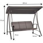 De schommelbank heeft een totale afmeting van 205 x 122 x H175 centimeter en biedt een zitbreedte van 140 cm en een zitdiepte van 55 cm. De rugleuning heeft een comfortabele hoogte van 64 cm. Voor het onderhoud van de schommelbank hoef je geen agressieve schoonmaakmiddelen te gebruiken, een zacht doekje of spons is voldoende.