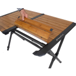 En als het tijd is om de tafel op te bergen, is dat ook een fluitje van een cent. Het frame is aan één stuk en kan eenvoudig worden ingeklapt. Vergeet niet om de stabilisatiestang los te maken voordat u het luxury bamboo blad oprolt en het geheel in de meegeleverde opbergtas steekt.