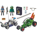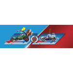 Deze spannende speelset bevat alles wat je nodig hebt om het avontuur tot leven te brengen. Je krijgt maar liefst twee PLAYMOBIL-figuren, elk met hun eigen rol in het verhaal. Daarnaast ontvang je twee karts met pull-backmotoren, waarmee je realistische racescènes kunt creëren. De kluis, die de ultieme prijs is voor de dief, is ook inbegrepen. En om de spanning nog verder te vergroten, krijg je een spijkerband, bankbiljetten en verschillende andere extra's die je kunt gebruiken om je verbeelding de vrije loop te laten.