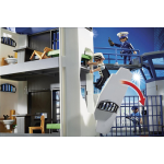 Open de poort! We hebben een nieuwe boef kunnen vatten! Met de boef in de boeien lopen de agenten vol trots het PLAYMOBIL politiebureau binnen. Hier begint het avontuur. De boef wordt ondervraagd over zijn misdaad en vervolgens worden er vingerafdrukken genomen en foto's gemaakt vanuit verschillende hoeken. Het team besluit de boef een week vast te houden in het PLAYMOBIL politiebureau, maar al snel slaat het noodlot toe. Het alarm gaat af, de boef is ontsnapt! De politieagenten staan paraat. Ze grijpen snel naar hun beveiliging en geweren uit de voorraadkast en gaan achter de boef aan. Zullen ze hem kunnen vatten? Het politiebureau beschikt zelfs over een landingsbasis voor de helikopter, waarmee de agenten hun missie nog spannender kunnen maken.