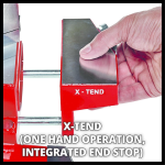 De X-Tend werkstuksteunen zijn gemakkelijk verstelbaar zonder gereedschap en zorgen voor een stabiele ondersteuning van het werkstuk. Daarnaast is de zaag uitgerust met een spaanopvangzak en een adapter voor stofafzuiging, waardoor de werkplek schoon en opgeruimd blijft.
