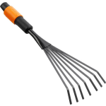 Als u kleine oppervlakken moet harken, is er niets beter dan de kleine Fiskars QuikFit bladhark. Dit harkje heeft een duurzaam FiberComp frame en 7 stalen tanden. Met een breedte van 13 cm is dit de ideale hark voor het gebruik tussen kweekgoed en kleine plantenbedden. Dit bladharkje kan gebruikt worden met korte en middellange stelen voor nauwkeurig harken.