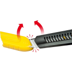 Met de antichoc ABS uitvoering en de veilige schuifknop biedt het STANLEY Afbreekmes SM optimale veiligheid. U hoeft zich geen zorgen te maken over ongelukken tijdens gebruik. Het afneembare kapje zorgt ervoor dat u de messegmentjes veilig kunt afbreken, wat het risico op letsel verder verkleint.