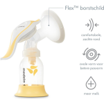 De vernieuwde Medela Harmony Handkolf is uitgerust met het unieke Flex borstschild voor meer melk en meer comfort tijdens het kolven. Het Flex borstschild heeft een ovale vorm, een openingshoek van 105° en een zachte rand. Dit zorgt voor een verbeterde, comfortabelere pasvorm dan traditionele borstschilden. De druk op de melkkanalen wordt verminderd, wat resulteert in een betere melkstroom en een efficiënter en comfortabeler kolfproces.