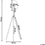 De vloerlamp heeft een maximaal wattage van 40W en vereist een lichtbron die niet is inbegrepen. De afmetingen van de lamp zijn 60 cm breed, 60 cm diep en 170 cm hoog, met een gewicht van slechts 5 kg. Let op: de lamp is geschikt voor gloeilampen van efficiëntieklasse A tot G en kan gebruikt worden met LED-, halogeen- en spaarlampen.