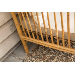 Bamboe is een zeer sterk natuurproduct en erg flexibel. Hierdoor hebben de tuinmeubelen een hoog duurzaamheidsniveau. Houd er echter rekening mee dat bamboe kan vergrijzen of beschimmelen door weersinvloeden. Het kussen is voorzien van een sterke buitenstof en vulling van standaard schuim. Let op dat het kussen niet buiten kan blijven liggen en berg het na gebruik op.