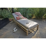 Het Bamboo ligbed inclusief kussen heeft een comfortabele hoogte van 43 cm, een breedte van 217 cm en een totale diepte van 85 cm. De hoofdsteun is opklapbaar, zodat je in een ontspannen loungestand kunt liggen. Met een draagkracht van maximaal 100 kg is dit ligbed geschikt voor verschillende gebruikers.