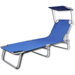 Vidaxl Ligbed Inklapbaar Met Luifel Staal En Stof - Blauw