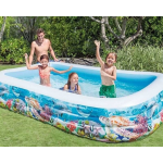 Intex Swim Center Zwembad met Oceaanleven OntwerpHaal het plezier van de zomer in huis met het comfortabele Intex Swim Center zwembad met kleurrijk oceaanleven ontwerp. Dit rechthoekige opblaaszwembad is gemaakt van sterk vinyl, waardoor het stevig en duurzaam is. Het zwembad is ontworpen met I-beam wanden en geprinte afbeeldingen, wat zorgt voor zowel stevigheid als comfort.Dankzij de drie luchtkamers, elk met een handig co... lees meer over dit product