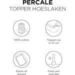 Gemaakt van 100% ademend en natuurlijk percal katoen, biedt dit hoeslaken niet alleen een perfecte pasvorm, maar ook duurzaamheid en comfort. Het kwaliteitselastiek rondom zorgt ervoor dat het bed opmaken zo gemakkelijk mogelijk is.