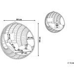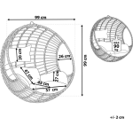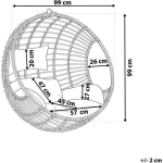 De afmetingen van de hangstoel zijn 99 cm breed, 99 cm hoog en heeft een zitoppervlak van 99x65 cm. Het gewicht van de stoel is 10 kg en het draagvermogen is 90 kg. De stoel wordt geleverd inclusief 1 x stoel, 1 x zitkussen en 1 x kussen. Montage is niet nodig, maar een extra ketting of koord is vereist om de stoel op te hangen.