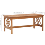 Deze prachtige 2-delige houten meubelset is ontworpen om je tuin, terras of andere buitenruimte een vintage uitstraling te geven. De set bestaat uit een comfortabel bankje en een stijlvolle salontafel. Het massief acaciahouten constructie met olieafwerking zorgt ervoor dat deze meubelset stabiel en duurzaam is.