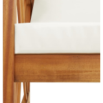 De salontafel heeft een gelat ontwerp en biedt voldoende ruimte voor snacks, fruitmanden, decoratieartikelen en andere benodigdheden. Het massief houten tafelblad voegt een natuurlijk element toe aan je buitenruimte. Het bankje is voorzien van zitkussens en rugkussens, waardoor het uiterst comfortabel is om op te relaxen. De rugleuning en armleuningen bieden extra zitcomfort, zodat je lang kunt genieten van je buitenruimte.