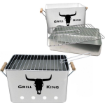 De barbecue heeft een stijlvol zilverkleurig ontwerp en is vervaardigd van hoogwaardig zink en hout. Hierdoor is hij niet alleen duurzaam, maar ziet hij er ook nog eens mooi uit. De totale afmetingen van de barbecue zijn 32 x 20 x 20 cm (L x B x H),met een binnenbak van 31 x 19 x 8 cm (L x B x H). Daarnaast is de barbecue voorzien van houten handgrepen, wat het geheel een extra vleugje elegantie geeft.