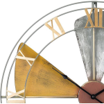 Maak jouw interieur compleet met deze originele wandklok in drie kleuren. Met zijn ongebruikelijke vorm en grootte zal deze meerkleurige klok een centraal punt van jouw kamer worden. Gemaakt van robuust ijzer en voorzien van een solide constructie, is deze klok niet alleen een eyecatcher, maar ook duurzaam. Het ronde frame is geschilderd in zilver, wat zorgt voor een interessant contrast met de gouden Romeinse cijfers.
