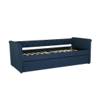 Dit uitschuifbed combineert een traditioneel design met een moderne twist, waardoor het perfect past bij elke interieurstijl. De afmetingen van het bed zorgen ervoor dat het zelfs in kleinere ruimtes past, terwijl het slaapoppervlak van 90x200 cm voldoende ruimte biedt om comfortabel te rusten. Het marineblauwe kap en de blauwe kleur voegen een vleugje verfijning toe aan elke kamer.