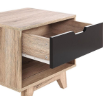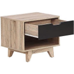 Met de lade en de open plank biedt dit nachtkastje voldoende opbergruimte voor boeken, tijdschriften en andere spullen die je bij de hand wilt hebben. Zo blijft jouw slaapkamer altijd netjes en geordend. Bovendien is het nachtkastje niet alleen functioneel, maar ook decoratief door het trendy design en de lichte houtkleur.