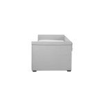 Ons bed is verkrijgbaar in een lichtgrijze kleur en heeft een afmeting van 184 cm breed, 220 cm lang en 75 cm hoog. Het slaapoppervlak is 90x200 cm en het draagvermogen is 130 kg. Het bed wordt geleverd met een bedframe en twee lattenbodems met 15 latten. Let op: matras, beddengoed en kussens zijn niet inbegrepen.