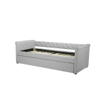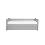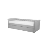 Elegant tandem-bed met retro uitstralingCreëer een stijlvolle en veelzijdige slaapoplossing met ons elegante tandem-bed met licht-grijze bekleding in een linnen-look. Geïnspireerd op de vormen van Chesterfield, combineert dit bed functioneel design met tijdloze stijl. De zacht aanvoelende linnen polyester bekleding, in combinatie met decoratieve knopen in vintage-stijl, past naadloos bij retro en traditionele interieurs.Opt... lees meer over dit product