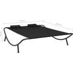 Ons loungebed is gemaakt van hoogwaardig, weerbestendig oxford stof, waardoor het geschikt is voor buitengebruik gedurende het hele jaar. Het gepoedercoat stalen frame zorgt voor superieure stabiliteit en duurzaamheid, zodat je jarenlang van dit bed kunt genieten.