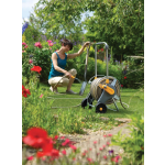 Dankzij de in hoogte verstelbare telescopische duwboom met softgrip en wielen met zacht profiel is deze slangenwagen eenvoudig te verplaatsen. Je kunt met gemak de slangenwagen door je tuin manoeuvreren zonder dat het veel moeite kost.