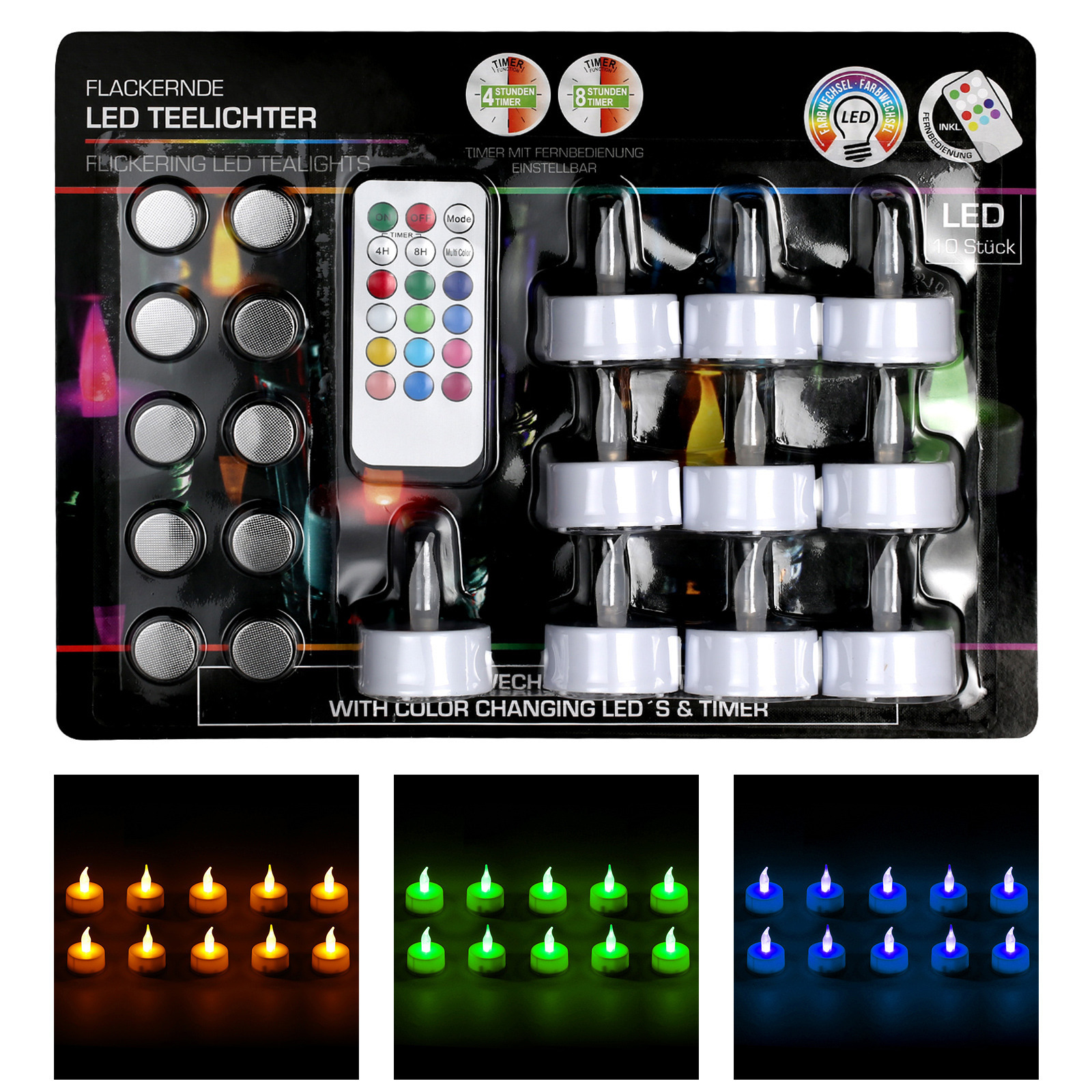 Huismerk Premium LED Theelicht Set Van 10 Met Afstandsbediening - Kleur Veranderend 4 cm