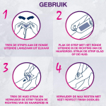 Gebruik met gemak deze waxstrips in slechts vijf stappen. Wrijf de strip warm tussen je handen, open deze voorzichtig met het handige Easy Strip lipje en breng de strip aan op je huid in de richting van de haargroei. Wrijf herhaaldelijk over de strip in de haargroeirichting om de wax goed te laten hechten. Houd je huid strak en verwijder de strip snel tegen de haargroeirichting in.