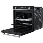 Veiligheid is gegarandeerd met het kinderslot, de klapdeur met driedubbel glas en de digitale timer met uitschakelfunctie. Daarnaast is de binnenruimte uitgevoerd in easy clean emaille, waardoor schoonmaken een fluitje van een cent is.