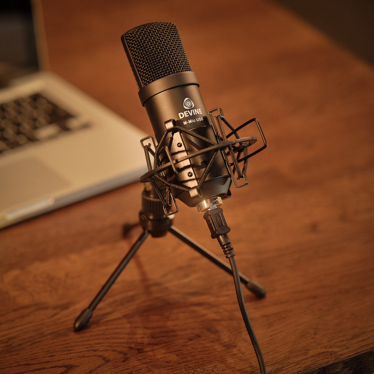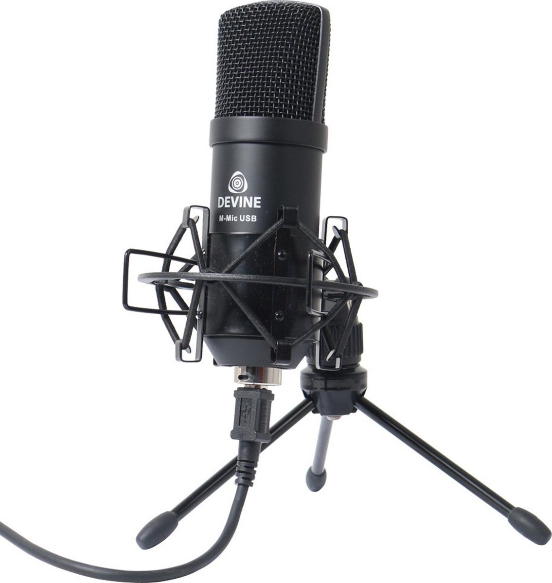 Opnames maken in een handomdraai, dat doe je met de Devine M-Mic USB BK opnamebundel. Inclusief tafelstatief, shockmount, usb-kabel en Devine Pro 3000 hoofdtelefoon.