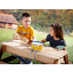 De Nick Zand & Water Picknicktafel is voorzien van een afneembaar tafelblad met een verborgen ruimte eronder. Deze ruimte is uitgerust met twee blauwe bakken die kunnen worden gevuld met zand en/of water, of gebruikt kunnen worden voor het opbergen van speelgoed. De bakken zijn eenvoudig uitneembaar en kunnen gemakkelijk schoongemaakt worden. Wanneer het speelplezier met zand en water voorbij is, kan de tafel in een handomdraai worden omgetoverd tot een picknicktafel waar de kinderen kunnen genieten van een heerlijke maaltijd of kunnen knutselen.