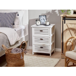 Stijlvol Wit Nachtkastje met Ruime OpbergladesHoud altijd jouw benodigdheden binnen handbereik met dit witte nachtkastje met 3 ruime lades. Of je nu een glas water wilt bewaren of jouw favoriete boek wilt neerleggen, dit nachtkastje biedt de perfecte oplossing. Met 3 lades is er voldoende opbergruimte voor telefoonladers, een reserve-bril en andere kleine items. Het nachtkastje is gemaakt van duurzaam massief paulowniahout, w... lees meer over dit product