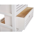 Dit nachtkastje heeft de volgende specificaties: de kleur is wit, het materiaal is massief hout met een bovenblad van bewerkt hout en het heeft een stabiel frame. Het heeft 3 lades en geen planken. De afmetingen zijn 40 cm breed, 29 cm diep en 58 cm hoog. Het nachtkastje weegt 5 kg en heeft een draagvermogen van 5 kg per lade en 25 kg voor het bovenblad.