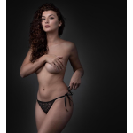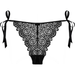 Voel je sexy en zelfverzekerd in deze spannende slip met zijn sexy striklinten aan beide zijkanten. Het kanten patroon voegt een vleugje elegantie toe aan deze verleidelijke lingerie. De slip is gemaakt van elastisch materiaal dat zorgt voor een perfecte pasvorm, waardoor je je comfortabel voelt en er tegelijkertijd prachtig uitziet.