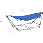 De levering bevat 1 hangmat en 1 inklapbare standaard. De hangmat is verkrijgbaar in een mooie blauwe kleur en heeft een totale afmeting van 241 x 76 x 70 cm (L x B x H). Na gebruik kan je de hangmat eenvoudig inklappen voor compacte opslag en gemakkelijk transport. Zo neem je hem moeiteloos mee op vakantie of naar het park.