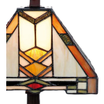 Voeg een stijlvol accent toe aan je interieur met dit prachtige strakke Tiffany tafellampje uit de Modern lines serie. Met zijn overwegend bruine en oranje tinten, en groene en rode accenten in de rand, past dit lampje perfect bij de Art-deco serie.
