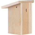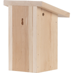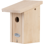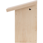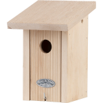 Het hout van de nestkast is 18 mm dik, wat zorgt voor optimale isolatie. Het aflopende dak zorgt ervoor dat water gemakkelijk wegloopt en beschermt tevens de invliegopening tegen wind en regen. Ventilatiegaten en drainage gaatjes zorgen ervoor dat het vogelhuisje niet te warm wordt en overtollig vocht kan afvoeren. De geruwde binnenzijde en groeven aan de voorzijde helpen jonge vogels bij het verlaten van het nest.