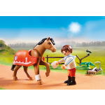 De set bevat een PLAYMOBIL jongensfiguur dat klaar staat om zijn pony te verzorgen. Daarnaast is er een prachtige Connemara-pony die op avontuurlijke ritten kan worden meegenomen. Met zijn kracht en elegantie zal deze pony zeker de harten van kinderen veroveren.