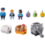 Laat je kindje genieten van eindeloos speel- en leerplezier met de 123 Dierentrein van Playmobil. Met schuiven, insteken en toewijzen is er altijd wel iets nieuws te ontdekken tijdens de leuke rit met de trein. De dieren in de trein kunnen individueel rijden of aan elkaar worden gekoppeld om een lange trein te vormen. Laat je kleintje ontdekken waarmee de kat speelt en wat de olifant eet door de foto's toe te wijzen aan de verschillende schuifdieren. Op deze manier kan je kindje zijn eigen verhaaltjes vertellen en zijn creativiteit stimuleren.