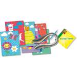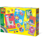 Met de Filigraan stickerkaarten van SES Creative kunnen kinderen zelf aan de slag met het maken van vrolijke filigraan kunstwerken. Het proces is eenvoudig en leuk: maak gebruik van de speciale filigraanpen om dunne strookjes gekleurd papier op te rollen en plak ze vervolgens op de klevende delen van de stickerkaarten.