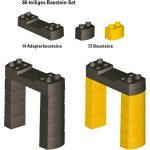 De set bevat 72 kunststof bouwstenen in verschillende kleuren, waarmee je jouw eigen viaductspoorweg kunt creëren. Daarnaast zijn er ook 14 adapterstenen inbegrepen, die ervoor zorgen dat de rails stevig op het viaduct kunnen worden bevestigd. Hierdoor kun je probleemloos je trein laten rijden over het viaduct.