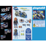 PLAYMOBIL Galaxy Police motorfietsStap in de wereld van de ruimtepolitie met de PLAYMOBIL Galaxy Police motorfiets. Of het nu op de weg is of in de lucht, niemand is sneller dan de stoere space-politieagent met zijn Galaxy Police-Bike. Uitgerust met een moderne jetrugzak en jetschoenen heeft de space-piraat geen schijn van kans om te ontsnappen. Met een druk op de knop start de politieman de jets en schiet de lucht in, terwij... lees meer over dit product