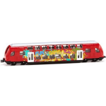 Dit schaalmodel van de dubbeldekstrein is uitgevoerd in opvallend rood en vervaardigd uit hoogwaardig kunststof en aluminium. Met een schaal van 1:120 zijn de afmetingen van deze trein perfect in verhouding. Het model is maar liefst 12 x 3 x 3,5 cm (L x B x H),waardoor het een mooie aanvulling is op elke treinbaan of vitrine.