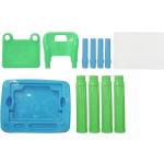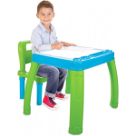De tafelset is verkrijgbaar in opvallende kleuren, zoals blauw en groen, en is geschikt voor kinderen vanaf 2 jaar. De afmetingen van de tafel zijn 69,5 x 56,5 x 50,5 cm (L x B x H) en de stoel heeft de afmetingen 21 x 29,5 x 52,7 cm (L x B x H). De tafel weegt 1880 gram en de stoel weegt 860 gram.