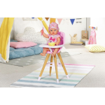 Met de BABY born Kinderstoel kan je jouw BABY born pop gemakkelijk voeden en samen genieten van een smakelijke maaltijd. Deze handige kinderstoel heeft een Scandinavisch ontwerp met houtkleurige poten en een comfortabel roze zitje. Op de rugleuning staan Bruno de beer en Berta de eend ongeduldig te wachten op hun lunch.