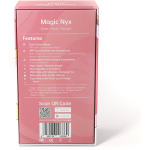 De Magic Nyx is gemaakt van hoogwaardig silicone en ABS-materiaal, waardoor het een zijdeachtig glanzend gevoel heeft. Het is ook IPX6 waterdicht, waardoor je het gemakkelijk kunt reinigen. De vibrator heeft een afmeting van 3.5 x 1.6 x 0.5 inch en weegt slechts 1 ounce, waardoor het discreet en draagbaar is. De batterij heeft een oplaadtijd van 1 uur en kan 1 uur ononderbroken gebruikt worden. In de doos vind je de Magic Nyx, een gebruikershandleiding, een magnetische USB-kabel en een opbergtas.