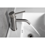 Deze Wiesbaden Ribbd wastafelmengkraan geeft een subtiele touch aan uw badkamerinterieur. Met een hoogte van 18 cm behoort deze kraan tot de lage kranen, waardoor hij perfect past bij elke wastafel. De geborsteld stalen afwerking en de unieke geribbelde hendelknop maken deze kraan een echte blikvanger.