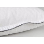 Een belangrijk kenmerk van de New Classic® kussenserie is het unieke stabilisatieschot. Dit zorgt ervoor dat de vulling grotendeels op zijn plaats blijft, waardoor het kussen zijn vorm behoudt en optimale ondersteuning biedt. Het New Classic® Medium kussen is gevuld met een combinatie van 50% Latex vlokken en 50% synthetische bolletjes, met een vulgewicht van 1200-1300 gram.