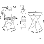 Deze bistroset is gemaakt van hoogwaardig, ongelegeerd staal, waardoor hij langdurig buitenshuis gebruikt kan worden. Bovendien zijn alle elementen licht en vouwbaar, wat betekent dat je ze eenvoudig kunt opbergen wanneer je ze niet gebruikt. De stoelen hebben een comfortabele zitting met een hoogte van 45 cm en kunnen een gewicht tot 120 kg dragen, terwijl de tafel een draagvermogen heeft van 25 kg.